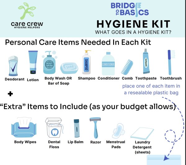 Let's help address this need by making hygiene kits for struggling individuals and families.